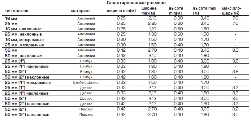 | Параметр | Алюминиевые жалюзи (25/50 мм) | Деревянные жалюзи (25/50 мм) |