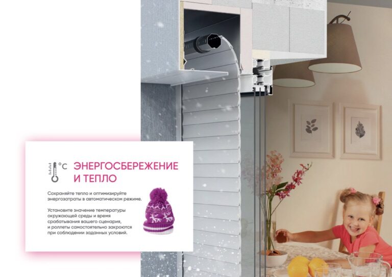 За счет установки уличных температурных параметров и периода действия предусмотренного сценария, произойдет автоматическое закрытие «умных» роллет с соблюдением определенных условий. К примеру, при понижении температурного режима до -1 градуса после 20:00. Таким образом, удастся удержать максимальный объем тепла, оптимизировать расходы электроэнергии в автоматическом режиме срабатывания роллетной системы.