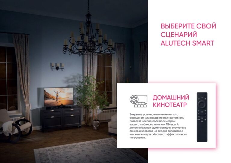 С помощью одного нажатия на кнопку можно организовать оптимальные условия с отсутствием посторонних засветов и бликов, дополнительной звукоизоляцией, что поможет полностью погрузиться в сценарий фильма. Настройки «умных» роллет можно задавать по предпочтительному графику за счет оснащения таймером. В этом случае посредством автоматики будет происходить самостоятельное закрытие и открытие солнцезащитного устройства.